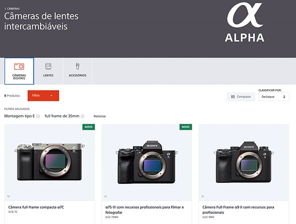 A screenshot from Sony Brazil’s website shows that the new Sony A7C, recent A7S III and A9 II cameras are featured in the interchangeable lens category. These cameras and the rest of Sony’s photographic offerings will no longer be on sale in Brazil starting in mid-2021.