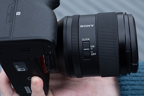 On the other side of the lens, you’ll find a switch to enable ‘clicks’ when you move the aperture ring, or to turn them off so it turns smoothly. This is going to really useful for shooters that move between stills and video. Around the front, we have a relatively modest 67mm filter thread, and the front element comes with a fluorine coating to aid cleaning and repel water drops and fingerprints.