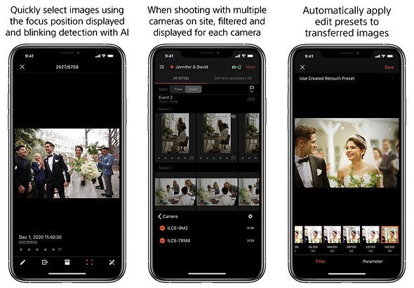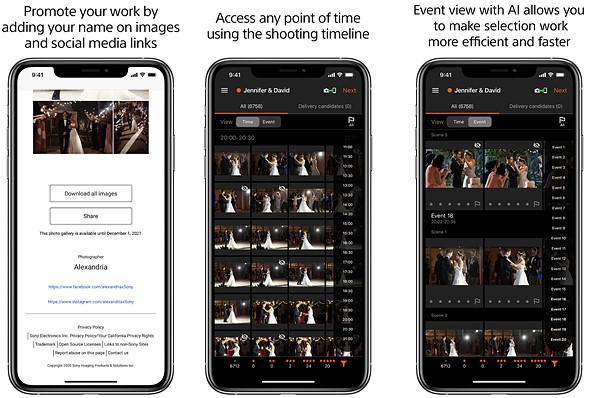 Visual Story offers automated image transfer from compatible Sony Alpha cameras to the cloud. From there, users can edit and deliver curated digital albums directly to their clients. To speed up image selection and organization, the app also utilizes AI and reads the metadata of your images.