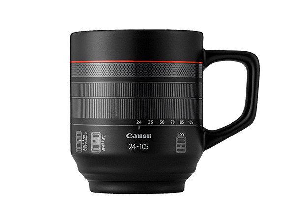 The first is a mug that not only looks like the RF 24–105mm F4 L IS USM lens, but is also essentially the same size, aside from handle. The cup is made of ceramic and measures 9.5cm tall (3.75″) and 8cm (3.15″) diameter.