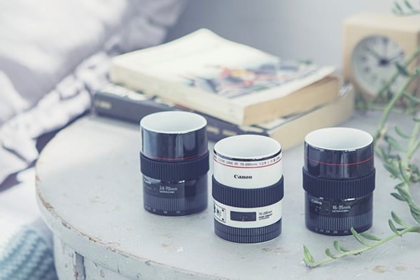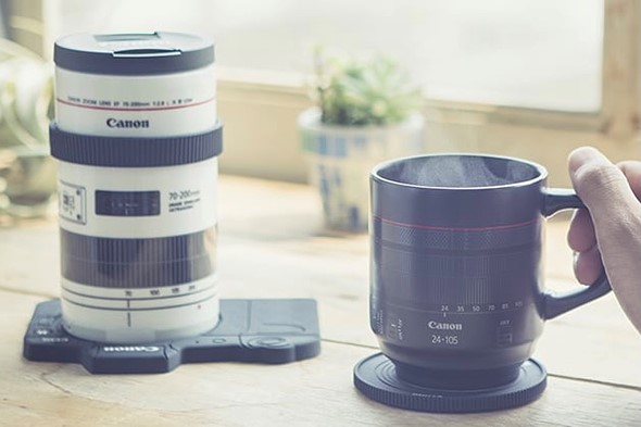 Canon Japan has added a selection of mugs, tumblers and shot glasses to its ‘fan goods’ site that ensures you can sip your favorite drinks from cups made to look like your favorite EF and RF lenses.