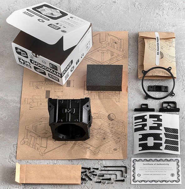 Looking at the Zone camera, users can either download and print the requisite files on their own, for free, or purchase the parts to build their own or order pre-built cameras from Goodman. The ability to purchase an assembled camera is a new option. The Goodman Zone starts at $113.40 USD (on sale, the regular price starts at $162). The Zone is currently compatible with the RB67 magazine (Pro S) and Mamiya Press lenses, although adapters allowing the use of a wider variety of lenses are in the works.