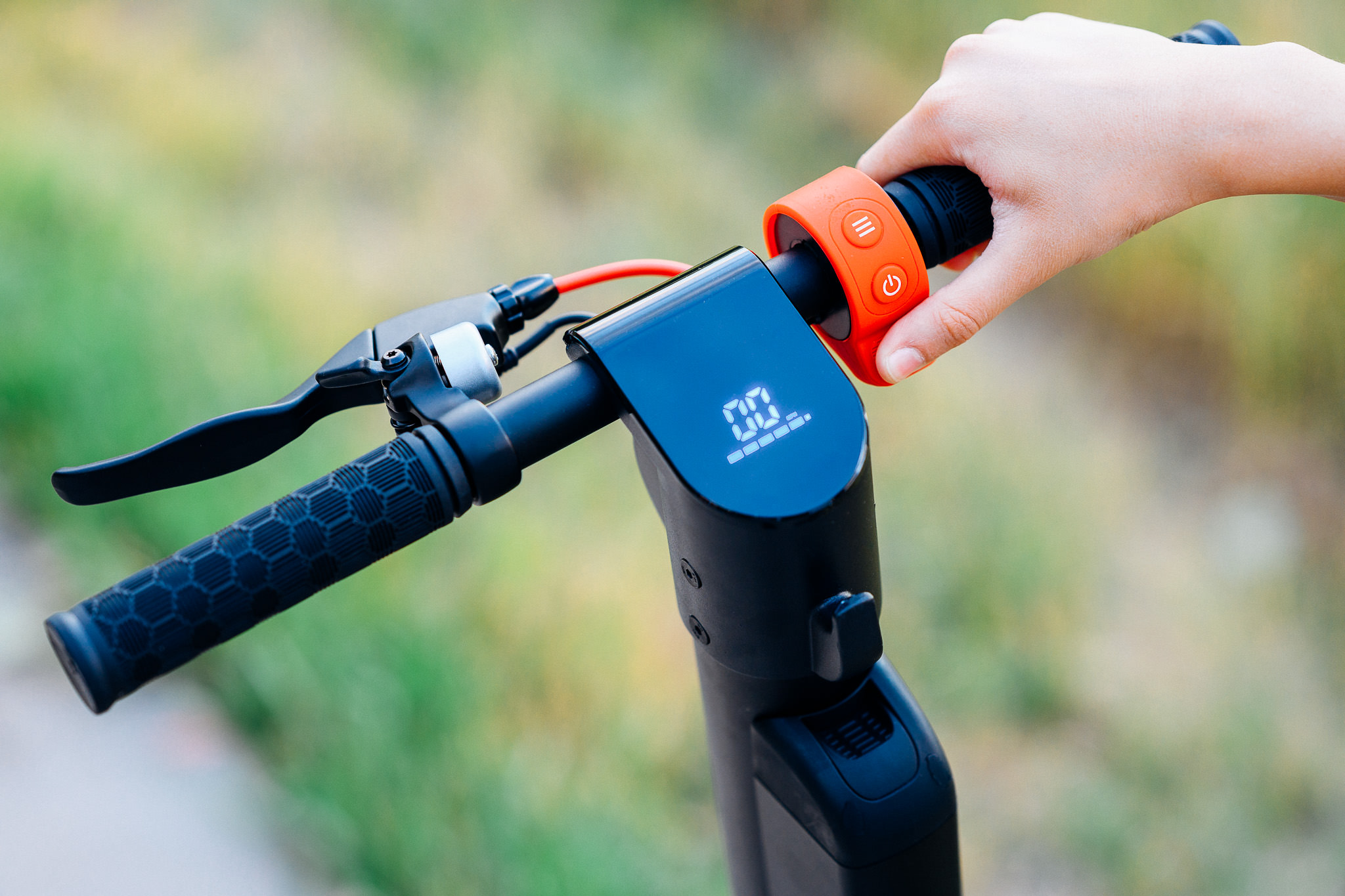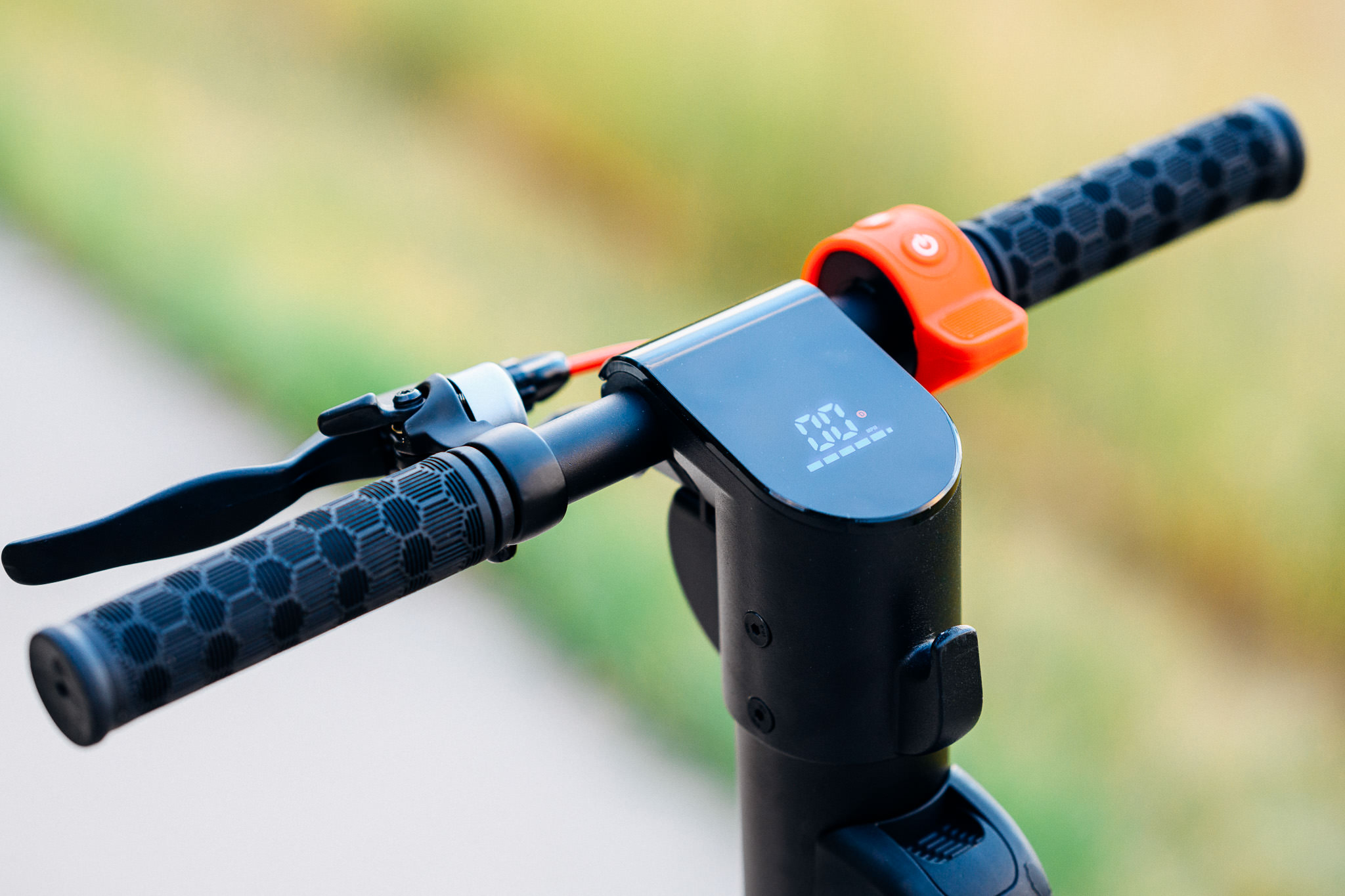 The ergonomics of the X7 Pro are excellent. The rubber handles are soft and comfortable to use with or without gloves, and your hands won’t easily slip off of them. The left handle has a single push break, which is quite sensitive – be careful when using it at fast speeds, as it can feel quite abrupt. Slightly below the brake handle, you will find a warning ring bell that can be triggered by pushing the lever. It is not very loud, but certainly audible for close pedestrians.
