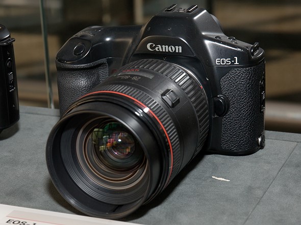 An image of the EOS-1, Canon’s first EOS-1 series camera, released in 1989. Photo by Morio used under CC BY-SA 4.0 |