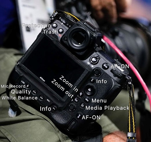 The original tweet has been deleted, but digicame-info managed to save the above images before their removal. Nikon has confirmed some details of its forthcoming flagship mirrorless camera, but only shown renderings of the front of the camera. These new images reveal the back side of the pro-style camera body, which appears to feature Nikon’s signature circular eyepiece, dual joysticks, a directional pad and a generous array of buttons. Below is a breakdown of the buttons (many of which are surely going to be customizable):