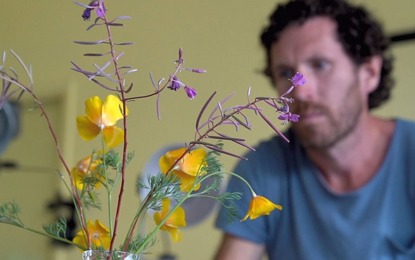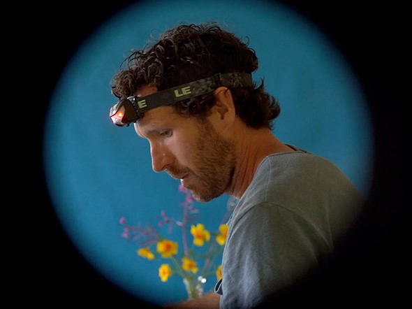 | Brendan Barry carefully arranges wildflowers for a new image. Each shot can take upwards of eight hours to create from start to finish. |