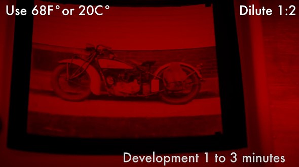 Brandreth likes to use this developer at 68° F (20° C). He uses a dilution ratio of 1:2 and a development time of 1-3 minutes, ‘depending on the look and feel you want for your print.’ If you do decide to make your own developer, be sure to wear proper safety equipment, including gloves.