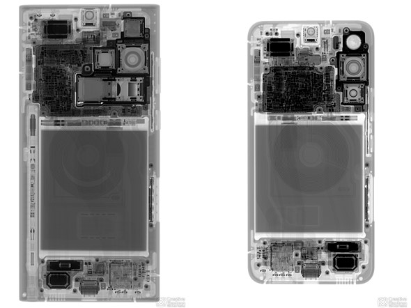Samsung Galaxy S22 Ultra (left) versus Galaxy S22 (right). Image credit: iFixit and Creative Electron |