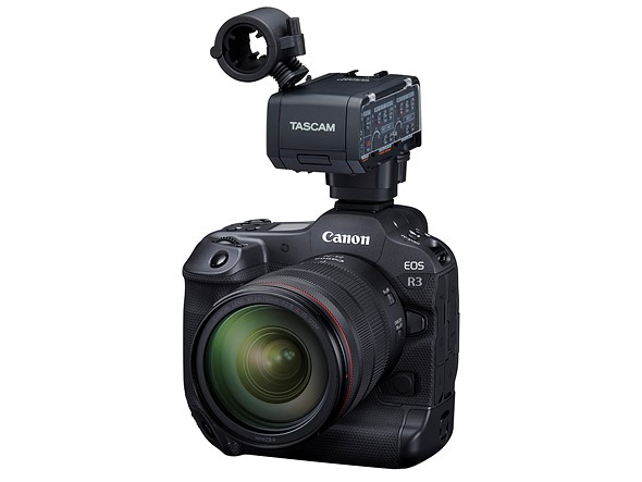 Earlier today, Canon unveiled its new XF605 professional camcorder. This is the first device to feature the company’s new ‘accessory shoe,’ likely the very same one we can expect to see in the EOS R3. While Canon hasn’t directly confirmed the multi-function shoe onboard the XF605 is the same we’ll see on the EOS R3, a new development announcement from audio company Tascam seems to all but confirm as much.