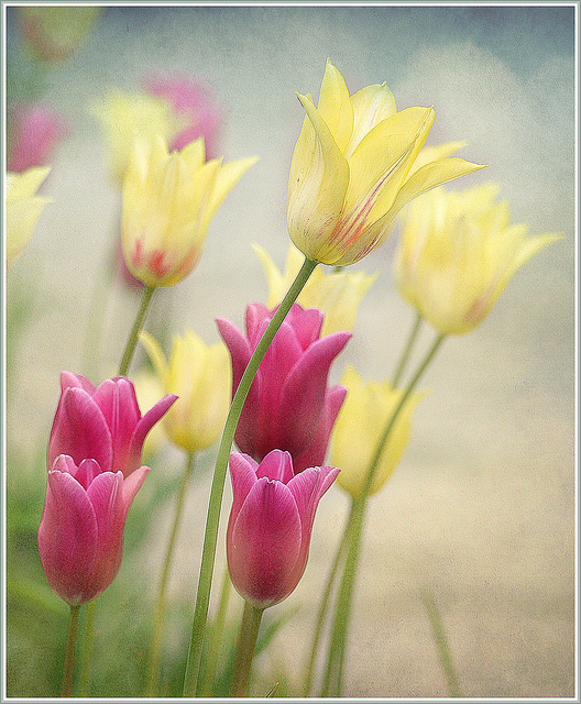 Now of course it’s your turn. Go find some flowers and photograph them. Go for a walk, find some wild flowers, or visit a garden. You could even think outside the box and make paper flowers or draw some on the sidewalk in chalk. Perhaps you could set up your tripod and do some macro shots and wait for a bee or bug to come along. Try some creative depth of field using a large aperture, or some multiple exposures.