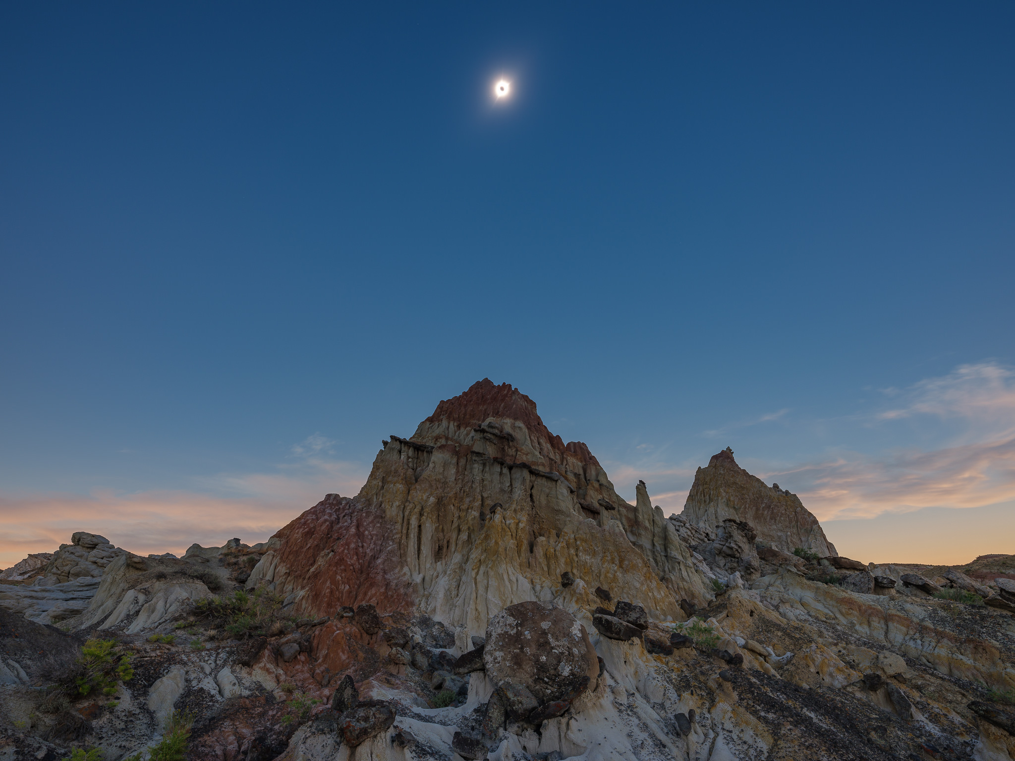 One example that I think embodies this is Nasim’s photo of the 2017 solar eclipse over a rock formation at Hell’s Half Acre. You can see his photo below: